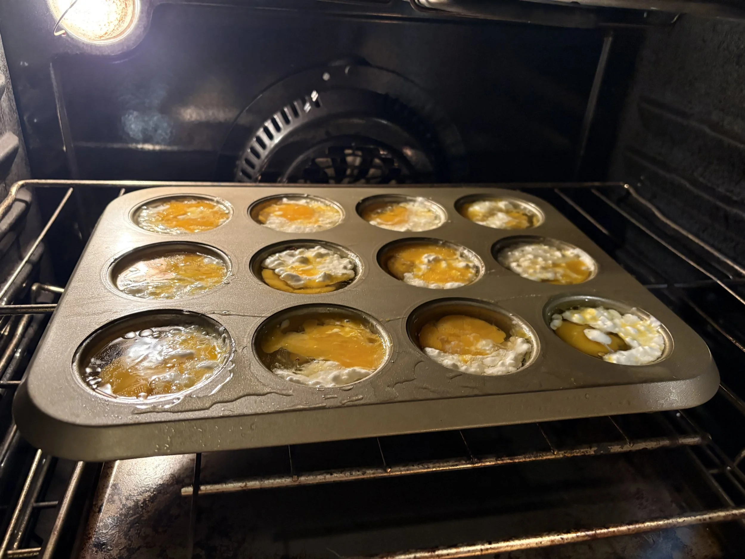 I’m no food blogger, so forgive the not-aesthetic photos… but these egg cup muffins are so easy! Literally one cracked egg, a scoop of cottage cheese, some salt and pepper! Cook at 350 until cooked through!